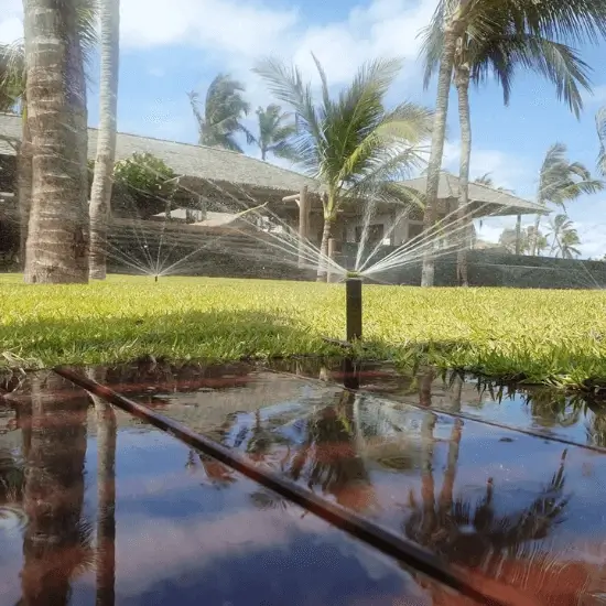 Instalamos aspersores que garantem uma cobertura de água uniforme para gramados e grandes áreas verdes.